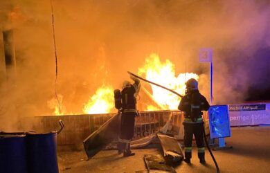 Container in Vollbrand in Wels-Puchberg