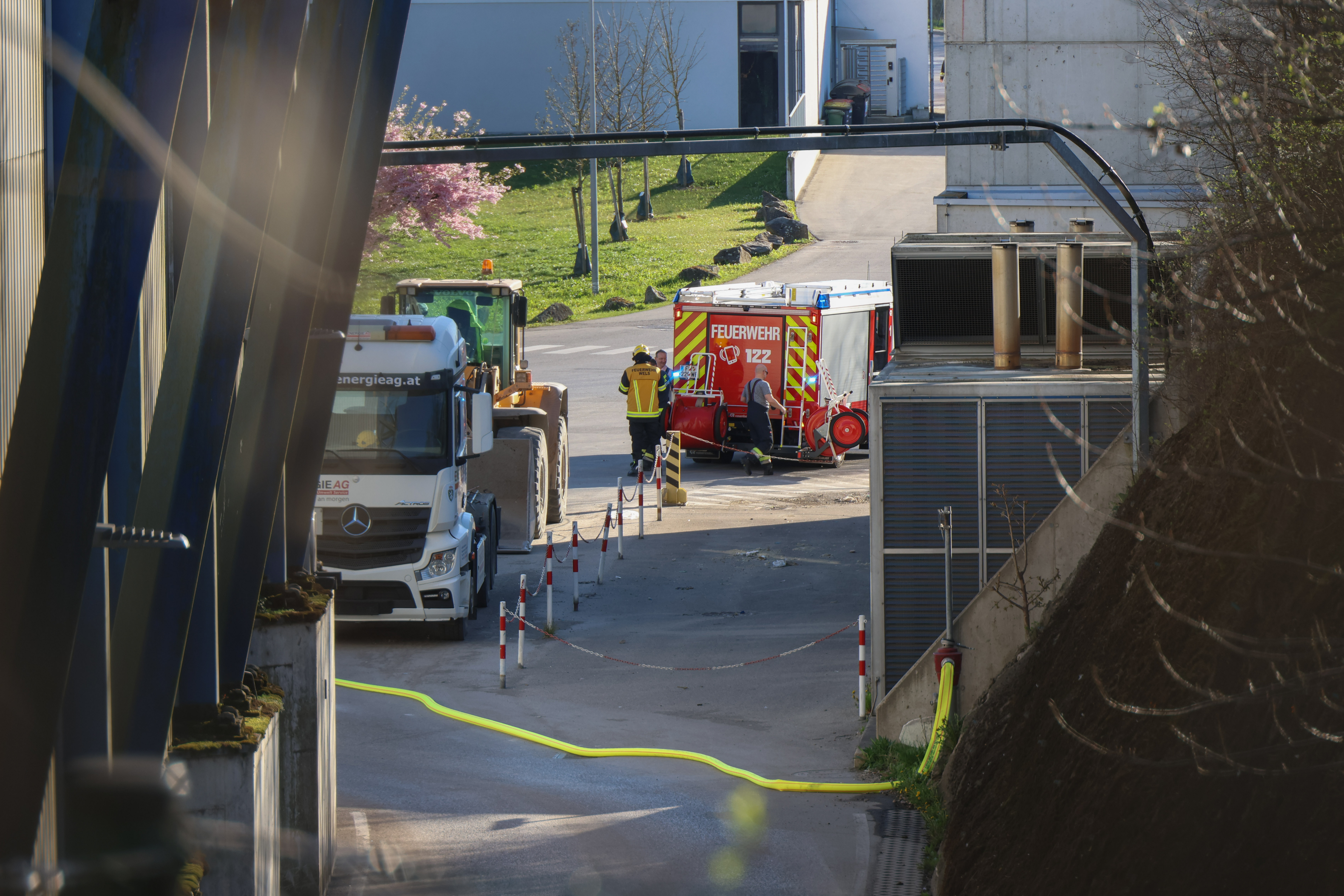 Schon auf der Anfahrt wurden die Einsatzkräfte der Feuerwehr Wels von der bereits am Einsatzort befindlichen Betriebsfeuerwehr darüber informiert, dass es zu einem Brand in einer größeren Anlage gekommen ist.