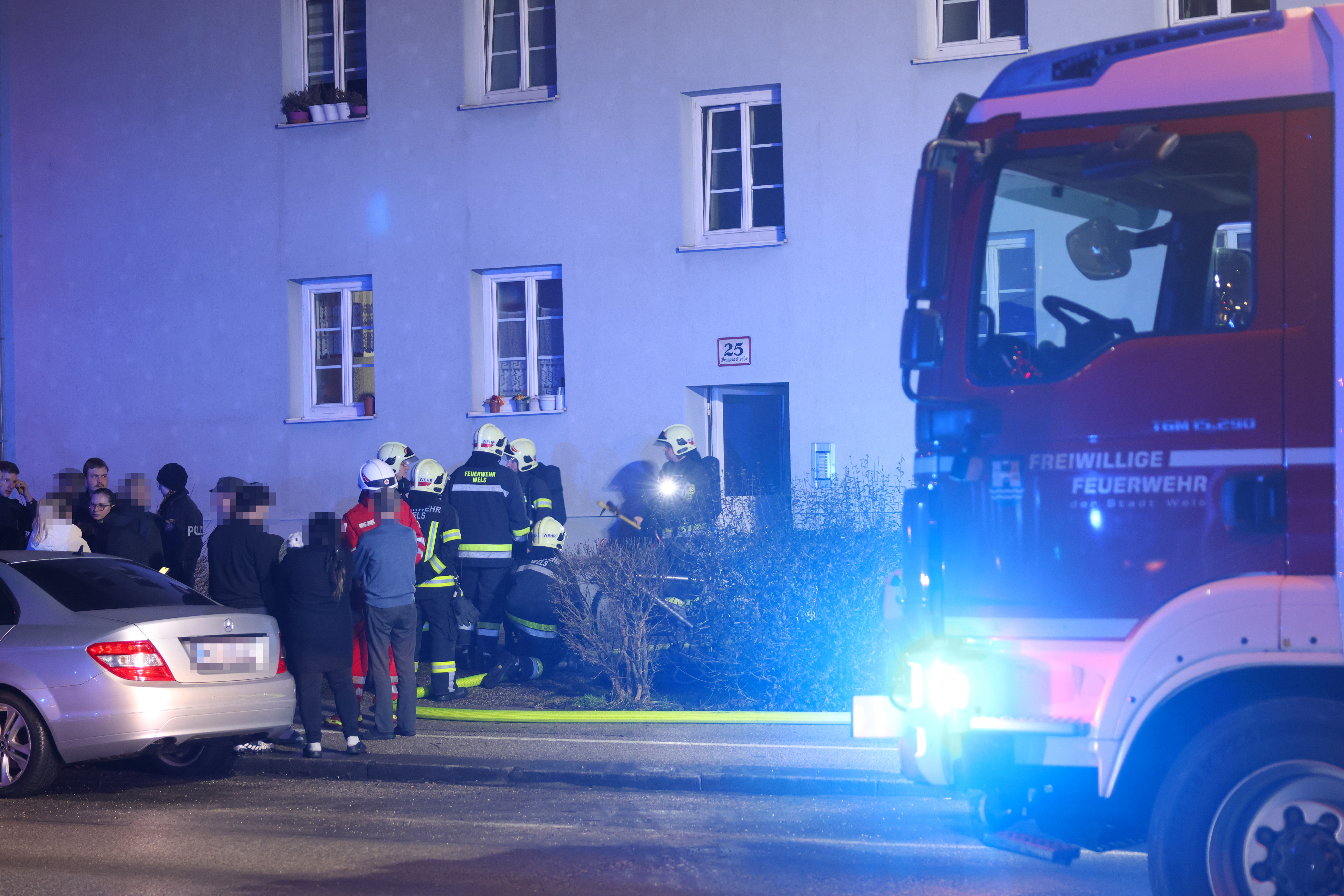 Im Einsatz standen die Freiwillige Feuerwehr Wels mit einem Löschzug der Hauptfeuerwache sowie das Rote Kreuz und die Polizei.